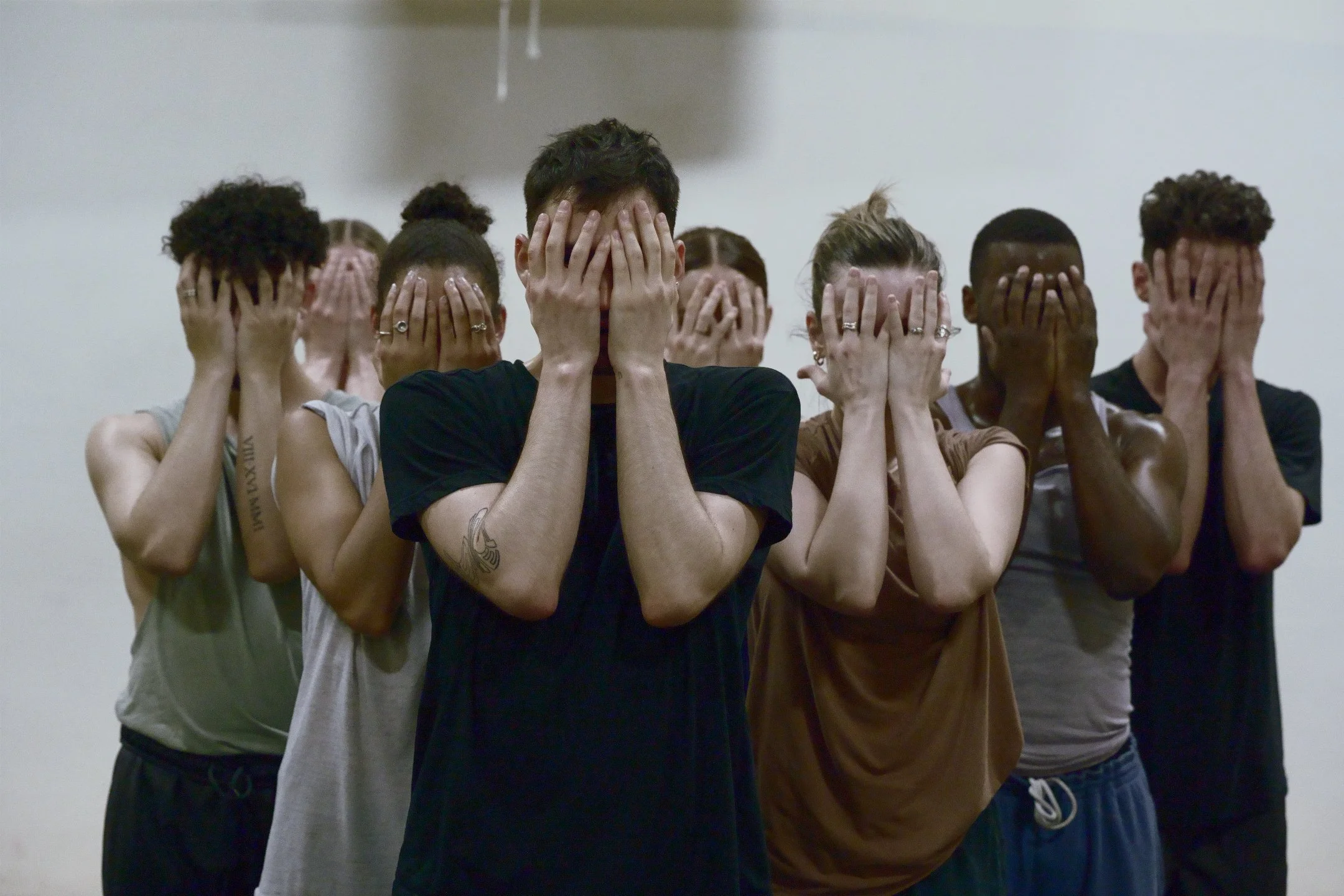 Created for a live experience, in a white-box or a proscenium theatre with a white scrim backdrop, the 75-minute work features 5 performers blurring the lines between dancer and actor, playing both students and educators.